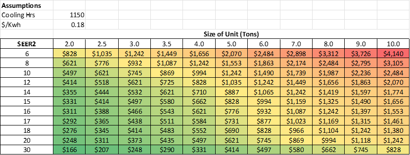 In this installment, we will explain what are SEER and SEER2 AC ratings and provide a simple formula for determining your annual operating costs for air conditioning. SEER stands for Seasonal Energy Efficiency Ratio. To calculate SEER, you simply divide Cooling output (in BTUs) by the total energy used in Watts. Let’s look at an […]
